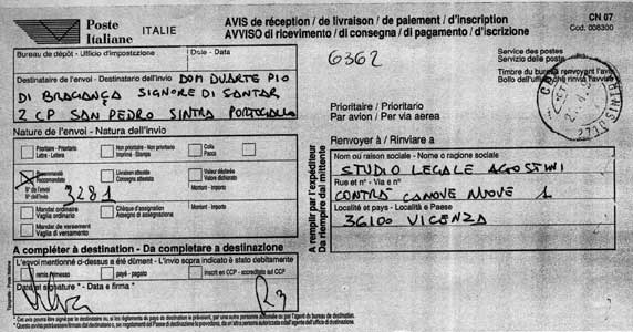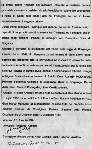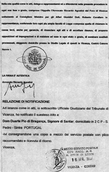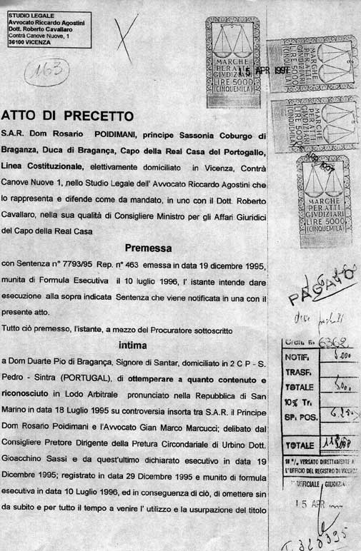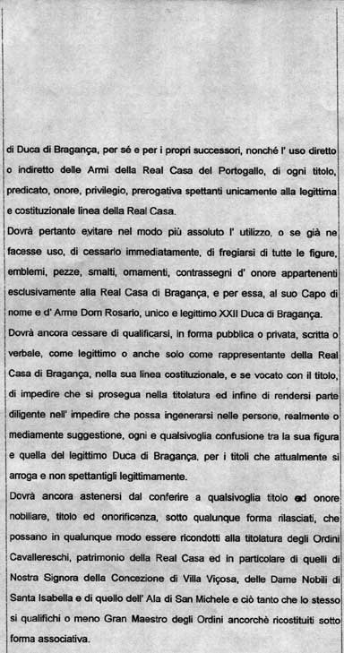genuine "Act of precept" in favor of HRH Dom Rosario,